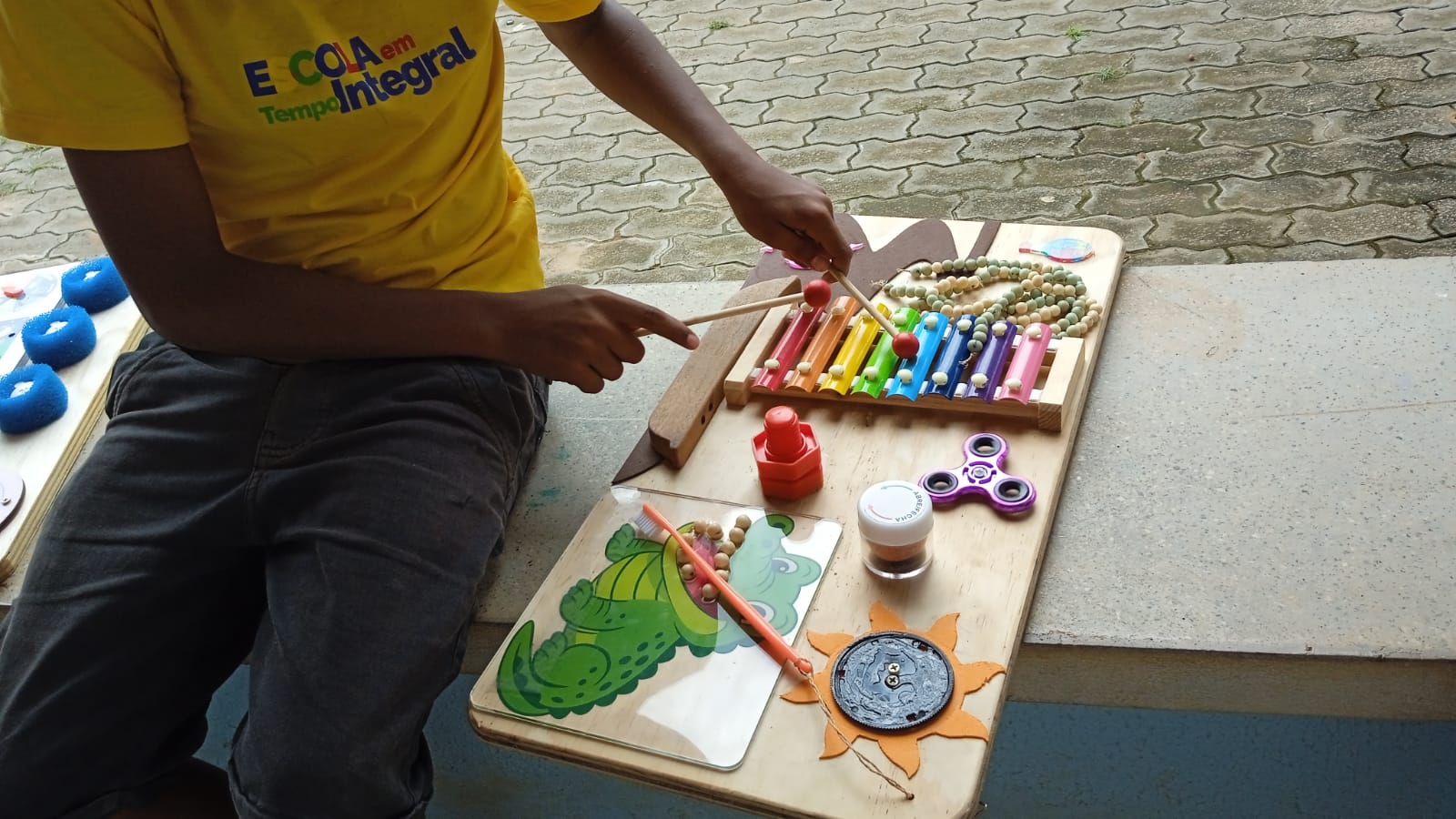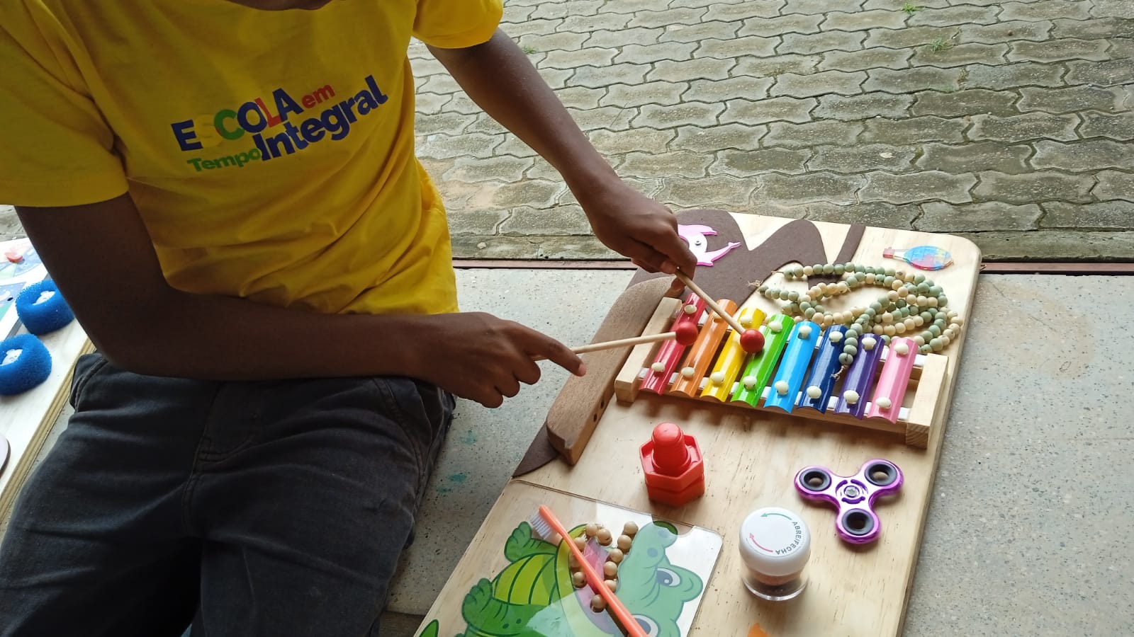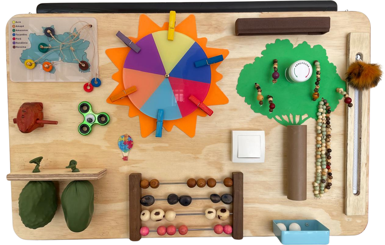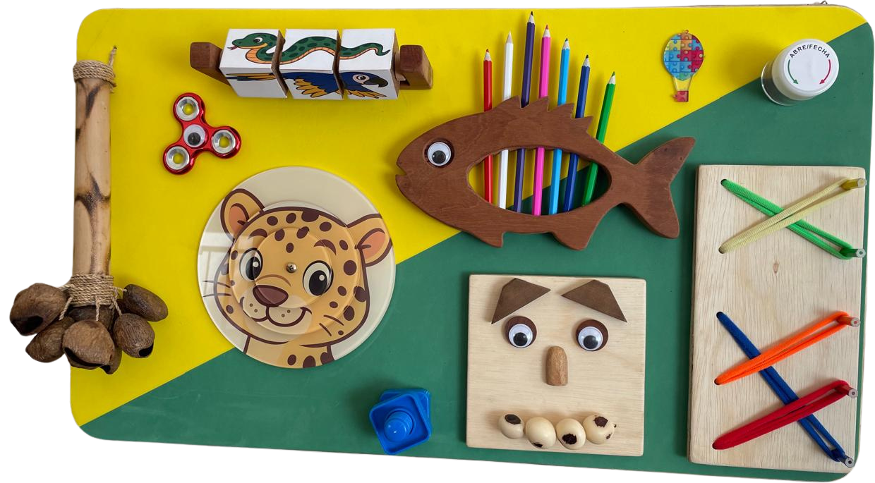 * Elementos: onça, peixe, cobra, boto, chocalho de castanha com bambu.